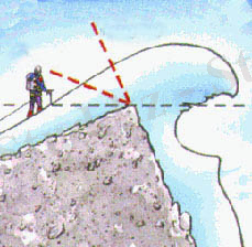 - Тік жартастардың қиылысын айналып өтіңіз. . Егер аяқ астынан кардың отыруынан шу естілсе қозғалысты токтату керек.