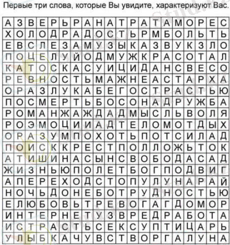 Психологиялық тестМына жердегі миыңыз алғашқы рет ұққан 3 сөз сіздің дәл қазіргі күйіңізді сипаттап береді екен. Сіздің миыңыз қандай 3 сөзді бірінші ұқты, ол сіздің өміріңізге сәйкес келе ме?
