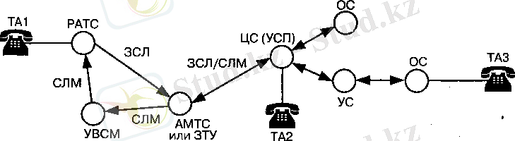ХХ ғасыр ішінде Қазақстандағы қалааралық және халықаралық телефон байланысы бір Оператормен ғана пайдаланымға беріліп отырған. ХХІ ғасырдың басында қалааралық және халықаралық телефон байланысының монополиясыздандыру нарығы басталды. 1. 1 суретіндегі «Л» және «В» әр түрлі ГТС-ке қосылған абоненттер байланысы, әр түрлі Операторлармен пайдаланымға берілетін бірнеше қалааралық байланыс желілерінің кез-келгені арқылы орнатылуы мүмкін. Осы қарастырылған модель үшін қалааралық байланыстың М желісі сипатталған.