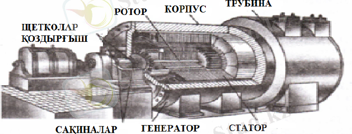 3) щеткалар мен сақиналар - айналып тұрған бөліктерден индукциялық токты шығарып алатын немесе электромагниттерге қоректенетін ток беретін