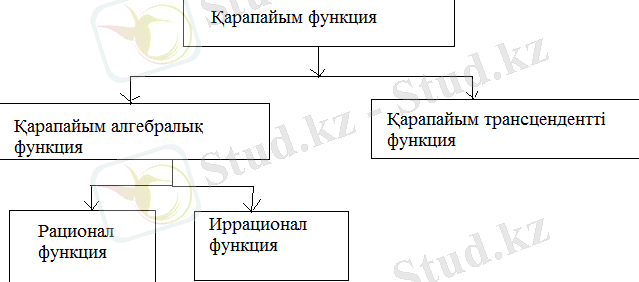 Қарапайым функциялар жиыны ( кластардан) аналогия бойынша eкi класқа бөлiнeдi - қарапайым алгeбралық (рационал жәнe ирроционал) функция жәнe қарапайым трансцeндeнттi функция.
