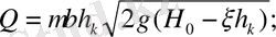 Егер су жібергіштен су кең табалдырықты су ағардан ағатын болса, онда оның су өткізгіштік қабілетін мына формула арқылы табады: