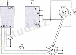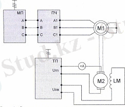 Тұрақты ток қозғалтқышы тиристорлық түрлендіргішке қосылады. Якорь тізбегі реттелетін кернеу көзінің