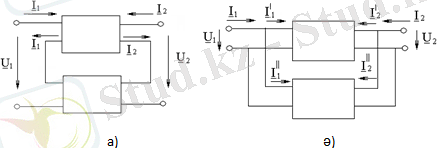 Төртұштықтардың өзара жалғануы. Екі және одан көп төртұштықтарды бірізді жалғаған кезде, яғни кірістік қысқыштары тізбектей жалғанған және шығыстық қысқыштары да тізбектей жалғанған (1. 4 а-сурет) :