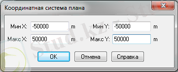 Аталған терезеде координатаның максикум және минимум аралықтарын енгіземіз. Біздің жағдайымызда минимум -50 000, ал максимум 50 000 метр.