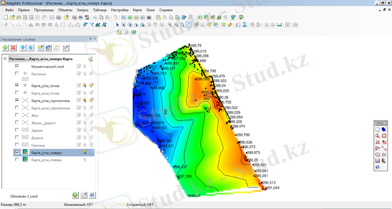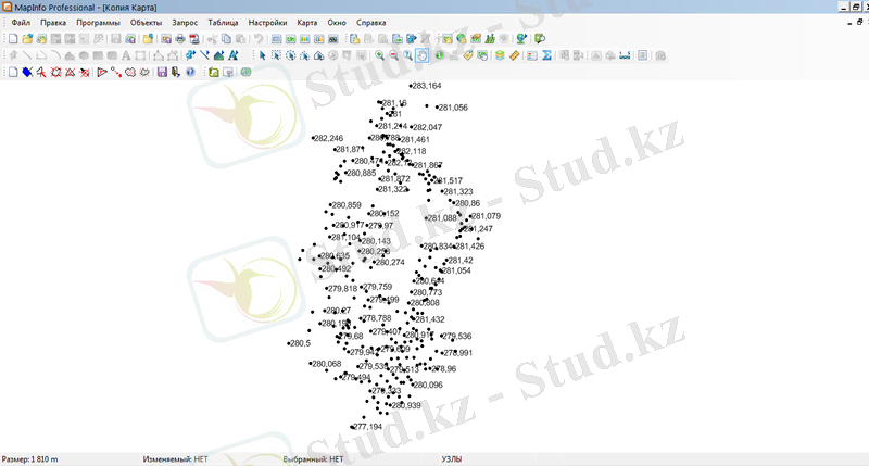 Сурет 3. MapInfo бағдарламасына өңделген тахеметриялық түсіріс