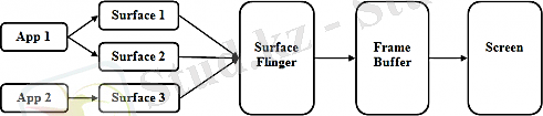 Android жүйесі Compiz-ге ұқсас беттердің композиттік менеджерді қолданады (X Window System үшін терезелердің композиттік менеджері OpenGL 3D графикасының жылдамдату үшін қолданылдады) . Беттер менеджері фрейм буферде беттердің барлық рендерингін (суреттеу) өңдейді. Менеджер 2D- және 3D- беттерін және бірнеше қосымшыларынан тұратын беттерді біріктіре алады. Тікелей буфер дисплейіне суреттеу графикасын жасаудың орнына жүйе келетін суреттеу командаларын артқы кадр буферіне жібереді, олар осында басқалармен бірге кейбір композициясын құрастырып жиналады, ал кейін экранға шығарылады. Осы процесті 2-суретте көруге болады.