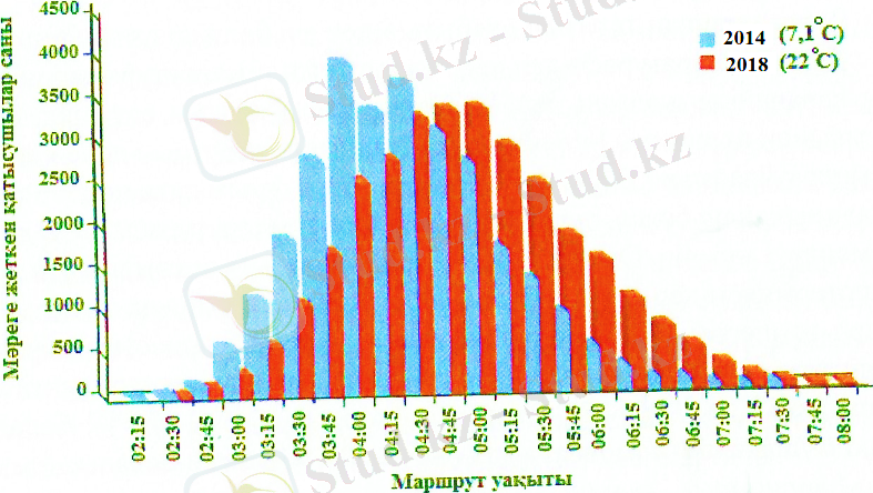 1-сурет. Чикаго марафоншылары нәтижелеріне (2014 және 2018 жылдар) қоршаған орта мен уақыт көрсеткіштерінің ықпалы (Geoffrey Berthelot, Adrien Sedeaud, Marion Gluillame, Jean-FrancoisToussaint. Scientific American, 2018)