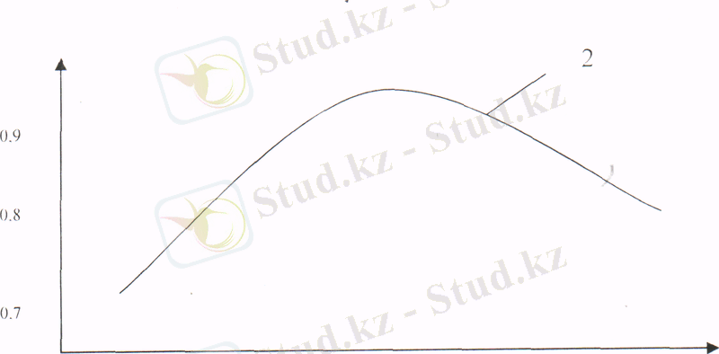 1. 5-суретте келтірілген диаграмамдан қысымдауыш өнімділігінің артуымен пайдаланылатын қуаттың артатынын көреміз және алдымен артады, сонан соң пайдалы әсер коэффициенті төмендейді. Егер жүйенің жалпы гидравикалық кедергісін төмендетсек, қысымдауыш өнімділігі жоғары болуы мүмкін.