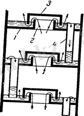 1 - пластина; 2 - салалық құбырлар; 3 - қақпақтар; 4 - толып кететін құбырлар