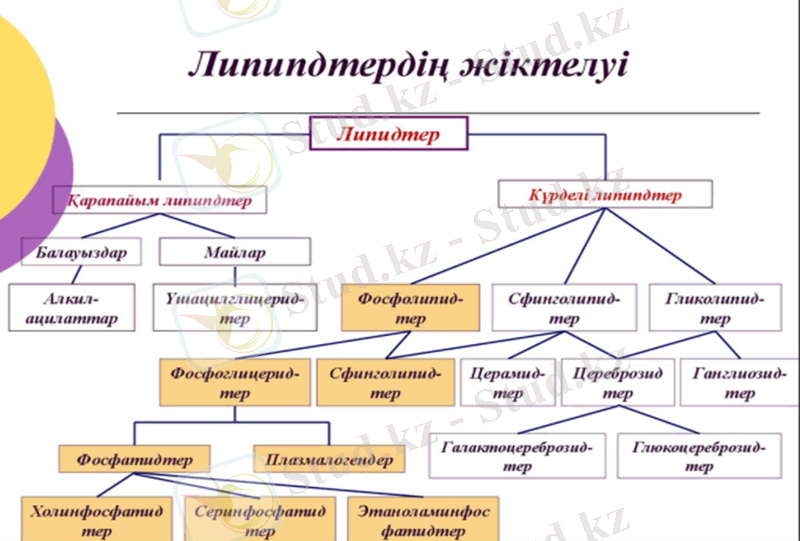 - Күрделі липидтер (фосфолипидтер, гликолипидтер, липопротеидтер)