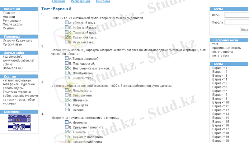 1-сурет. Ақпараттық веб-порталдың тест өту беті