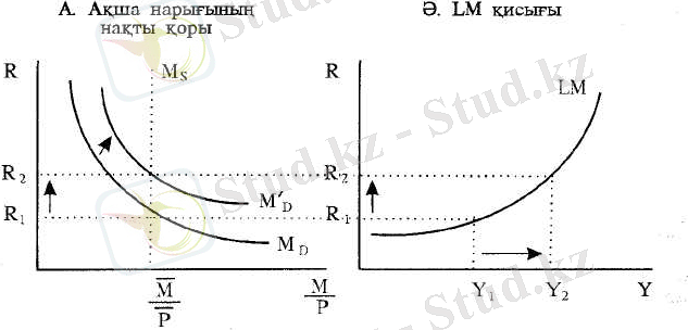 LM қисығының графигі - ақша ұсынысының (Ms) белгілі бір мөлшерінде ақша нарығындағы тепе - теңдікке сәйкес келетін пайыз мөлшерлемесі мен жиынтық сұраныстың арасындағы байланысты көрсетеді.