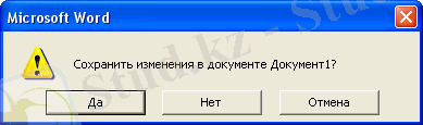 Егер программамен жұмысты аяқтау барысында мұның алдында өзгертіліп, бірақ дискіге жазылмаған құжат бар болса, онда редактор экранға қосымша сұқбаттасу терезесін шығарып, өзгертілген құжатты дискіге жазу ( Иә-Да ) керектігін, ал жазбасаңыз ( Жоқ-Нет ) оны да растап беруіңізді өтінеді. Қалауыңыз бойынша, редакторда әрі қарай жұмыс істей беруіңізге де ( Болдырмау-Отмена ) болады (1. 1-сурет) .