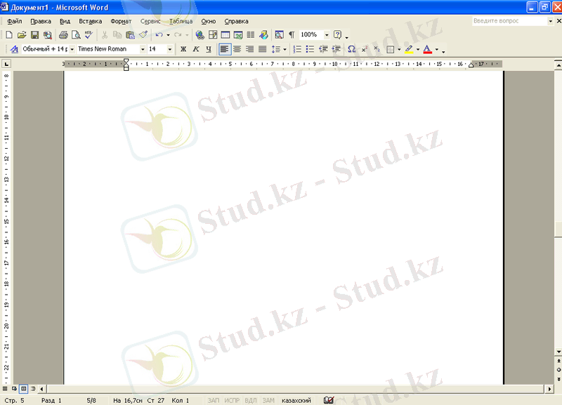 - 5/8 - құжаттын басынан есептегенде курсор тұрған орын 5-бетте, ал құжат барлығы 8 беттен тұрады;