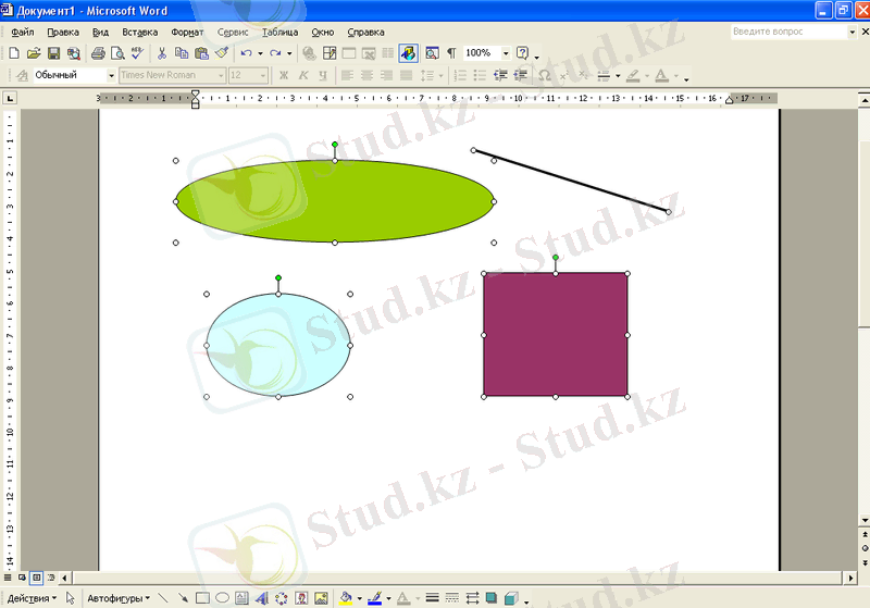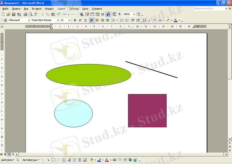1. 2-суретте меню жолының төменгі жағында Стандартты және Форматтау әрекеттерін ғана атқаруға арналған Аспаптар тақтасы орналасқан. Бұл екі тақтадан басқа Word редакторында бірсыпыра әрекеттерді атқаратын тақталар (Сурет салу, Көмек алу және т. б. ) бар. Нақты тақталар мен олардың әртүрлі батырмаларының атқаратын қызметі жұмыс барысында түсіндіріледі.