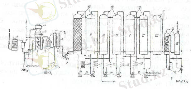 9- нитроз газдарының вентиляторы, 10- абсорбциялық мұнара,