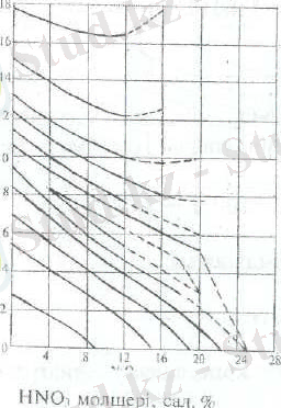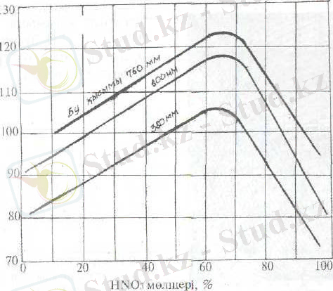 Температураны дейін көтерсе азот қышқылы толығымен ыдырайды (7 сурет) . Концентрациясы 99, 55% жоғары азот қышқылын тікелей дистерлеу жолымен 160 0 C алуға болады, себебі құрамында аз мөлшері су оның ұстамдылығы артады.