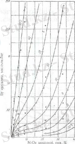 6. сурет. Әртүрлі температурадағы HNO 3 - N 2 O 4 система ерітіндісі бетіндегі NO 2 мен