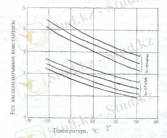 в - газдар үшін және сұйық үшін Рейнольдс саны 1200-3000; 100-600 аралығында, 45 0 С-де 10-15 см\сек және 25 0 С-де 2-8 см\сек болатын коэффициент.