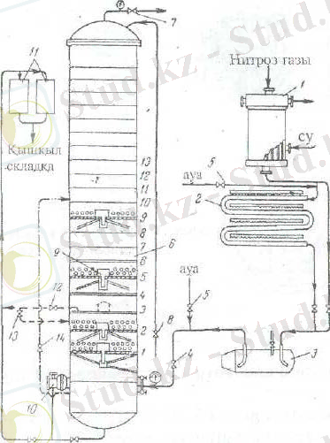 7- шығатын газды реттейтін тетік, 8- колоннаға берілетін суды реттегіш тетік,