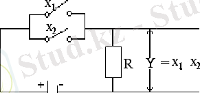 1. 5. 3 - сурет. “Дизъюнкция” логикалық функциясы тағайындайтын логикалық қосу амалын жүзеге асыратын электр тізбегі.