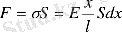 Мұнда Ғ күш дененің S қимасына әрекет жасайды, х қашықтық 0-ден ΔL- ге дейін өзгереді. Бірақ