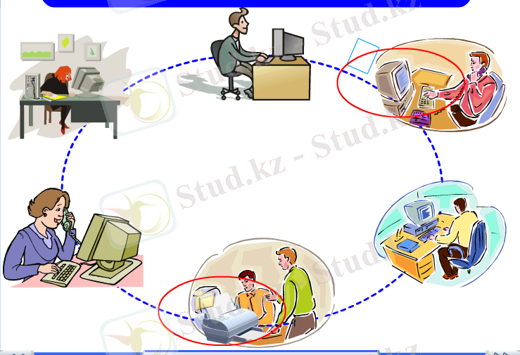 - желіге қосылған компьютерді пайдаланушылардың мәліметтерді ұжымдық өңдеуін және осы пайдаланушылар арасында мәліметтер алмасу;