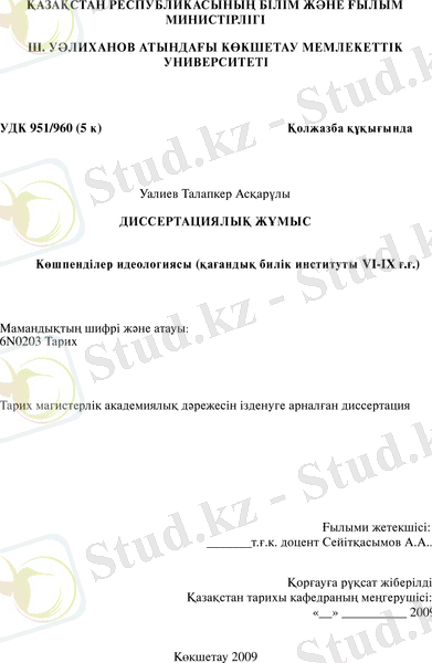 Тақырыптың өзектілігі. Бүгінгі таңда тәуелсіз Қазақстан Республикасының дамуымен және оның жалпыәлемдік деңгейде саяси-экономикалық қатынастарға араласуы жоғарғы биліктің идеологиялық бастаулары, оның пайда болуы туралы зерттеу жұмыстарын жүргізуге қажеттіліктер туғызды. Осы мәселені зерттеу барысында, мемлекеттік идеология дамуының көптеген аспектілерімен және олардың ортағасырлық көшпенділер мемлекетін құрудағы ролі мен маңызы айқындалады.