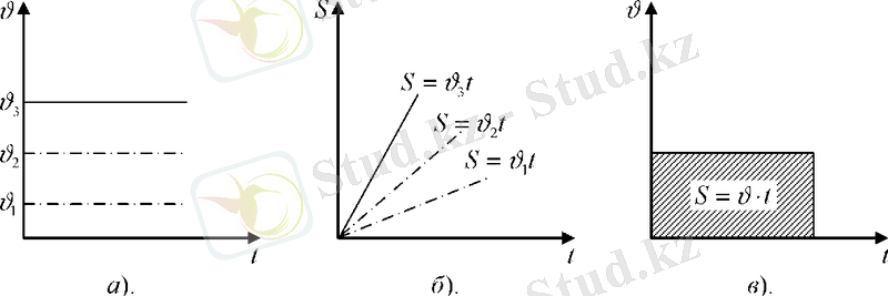 - жолдың S ұзындығының t уақытқа тәуелділігі формула түрінде беріледі.