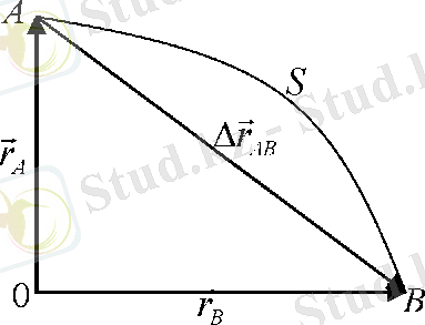 Дене ілгерлемелі қозғалыс жасағанда, оның барлық нүктелерінің қозғалыс сипаты бірдей болатындықтан, дененің орнына материялық нүктенің қозғалысын қарастырамыз. Материялық нүкте қисық бойымен қозғалады делік (2-сурет) . Осындағы ∆l векторы орын ауыстыру болып шығады. Материялық нүктенің белгілі бір уақыт аралығындағы орын ауыстыруы дегеніміз нүктенің бастапқы уақыт мезетіндегі орнынан соңғы уақыт мезетіндегі орнына жүргізілген ∆r векторы (2-сурет) . 2-суреттен ∆r b =r a + ∆r бұдан орын ауыстыру векторы мынаған тең: ∆r= r b = r a .