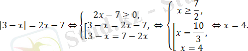 модуль ішіндегі өрнектің түбірі теңдеудің анықталу облысын екі аралыққа бөледі: