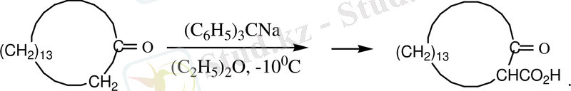 Карбанионның қалыптасуы үшін үшфенилметилнатрий қатысуымен циклопентадеканонның карбоксилденуін мысал ретінде көрсетуге болады [13] :