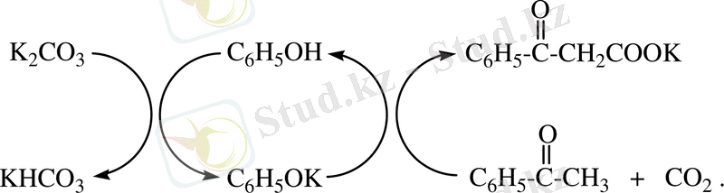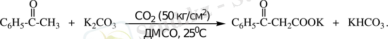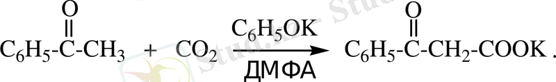 Ph - -CO 2 комплексін қолдана отыра қозғалмалы сутек атомдарын карбоксилдеу. Көміртек диоксидті диметилфармомидте сілтілі металл фенолят комплексін бөлме температурасында қолданып, органикалық қоспалармен қозғалмалы сутек атомының карбоксилдену реакциясын алғаш G. Bottacio және G. P. Chiusoli хабарлаған [14-16] . Фенолят және енолят арасында бұл реакцияны Кольбе-Шмидтің молекула аралық реакциясы ретінде қарастыруға болады: