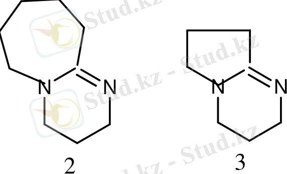 DBU және DBN мен қозғалмалы сутек атом қоспасының карбоксилдеу нәтижелері 3-5 кестелерде көрсетілген.