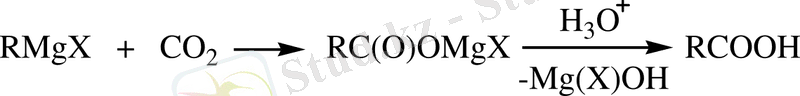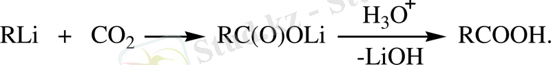 Күшті қышқылмен қышқылдану барысында карбон қышқылын беретін металлорганикалық қоспаларға байланысты карбоксилат түзетін кең көлемде белгілі реакция, ол көміртек диоксид реакциясы. Берілген реакция карбанион түзу үшін практикалық зертханада қолданылады. Карбон қышқылының түзілу барысында гриньяр және литийорганикалық қосылыстар көміртек диоксидімен реакцияға түседі [1-2] :