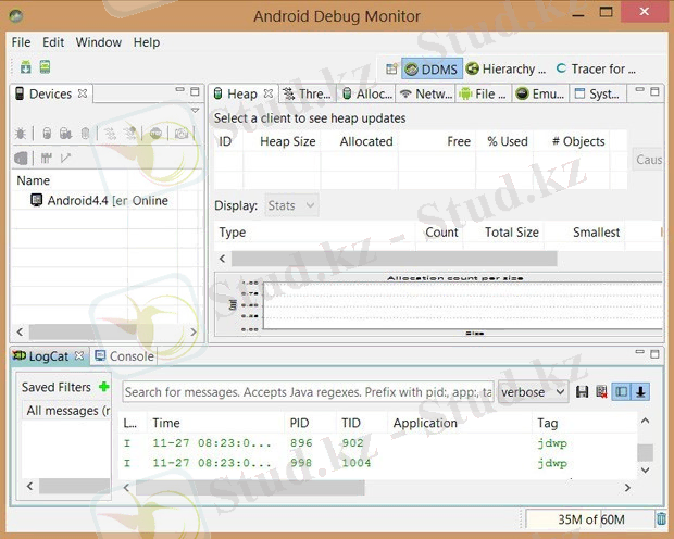 AVD Manager - Android Emulator-да қарастырылатын, виртуалды Android құрылғыларын құрастыруға және оларды басқаруға арналған графикалық интерфейс. Monitor құралының терезесі 1. 2 суретте көрсетілген.