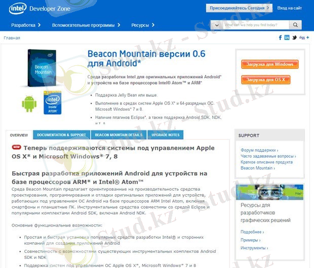 Android-қа арналған қосымшаларды құрастыруға мүмкіндік беретін басқа да құралдарды қарастырайық. Intel - Intel XDK және Intel Beacon Mountain құралдарын алатын болсақ :