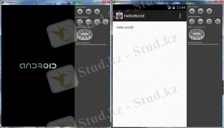 1. 6-сурет. Android SDK эмуляторы Hello, world қосымшанысының іске қосылу процесі