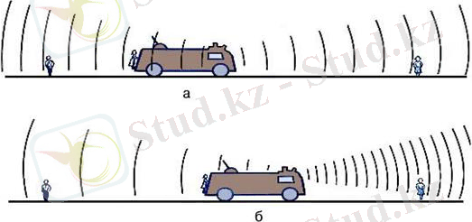 Толқын көзі сол жаққа қарай қозғалса, онда сол жақта толқын жиілігі өседі, ал оң жакта төмендейді.