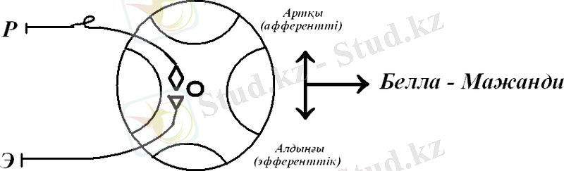 Жұлынның алдыңғы түбірін кескенде ® қозғалысы(-) ; сезімталдығы(+) ; ал оның артқы түбірін кескенде ® қозғалыс(+) ; сезімталдығы(-) болады.