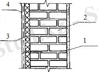 1-Гипсокартон, 2 - керамикалық кірпіш, 3- минералды плита П-125, 4- Керамогранитті плита қалыңдығы 1см
