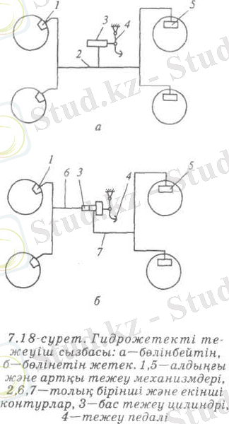 Гидравликалық тежеуіш жетектері бір жөне екі контурлы болады.