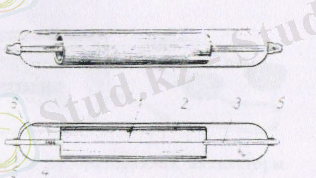 1 - металл қылсым; 2 - шыны түтік ішіне жалатылған металл қабат; 3 және 4 - изоляциоланған қылсым ұштары; 5 - контактілер; 6 - өткізгіш. [13]