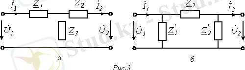 Пассив төртполюстікті үшэлементті эквивалентті Т- тәрізді схема (сур. 3, а) немесе П-тәрізді (сур. 3, б) орынбасу схемасымен көрсетуге болады.