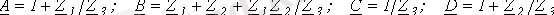 6. 3, б суретіндегі төртполюстіктің коэффициенттерін аналогия бойынша тап осы жолмен есептеуге болады немесе 6. 3, а суретіндегі схеманың табылған шешімдері бойынша «жұлдызша-үшбұрыш» түрлендіруін қолданып табуға болады.