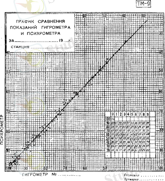 Гигрометр мен психрометр көрсеткіштерін салыстыру графигі