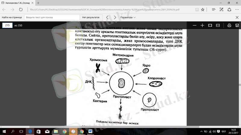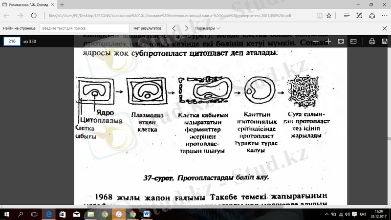 - Протопласттарды өсірудің әдістерін қарастыру;