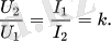 {\displaystyle {\frac {U_{2}}{U_{1}}}={\frac {I_{1}}{I_{2}}}=k. }