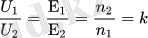 {\displaystyle {\frac {U_{1}}{U_{2}}}={\frac {\mathrm {E} _{1}}{\mathrm {E} _{2}}}={\frac {n_{2}}{n_{1}}}=k}аламыз, мұндағы {\displaystyle k}